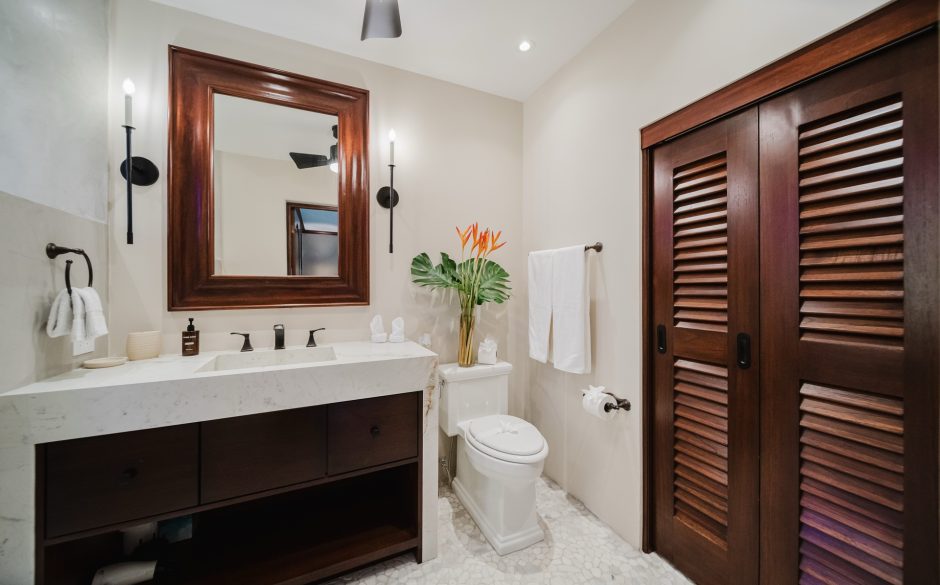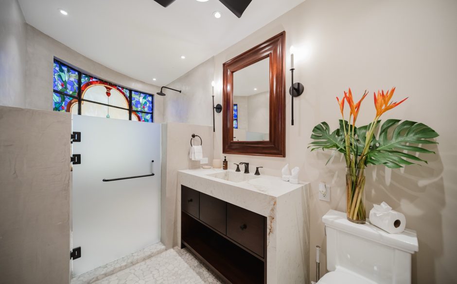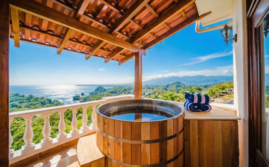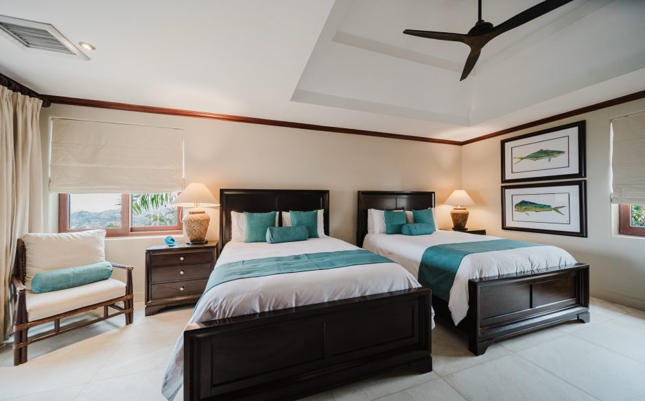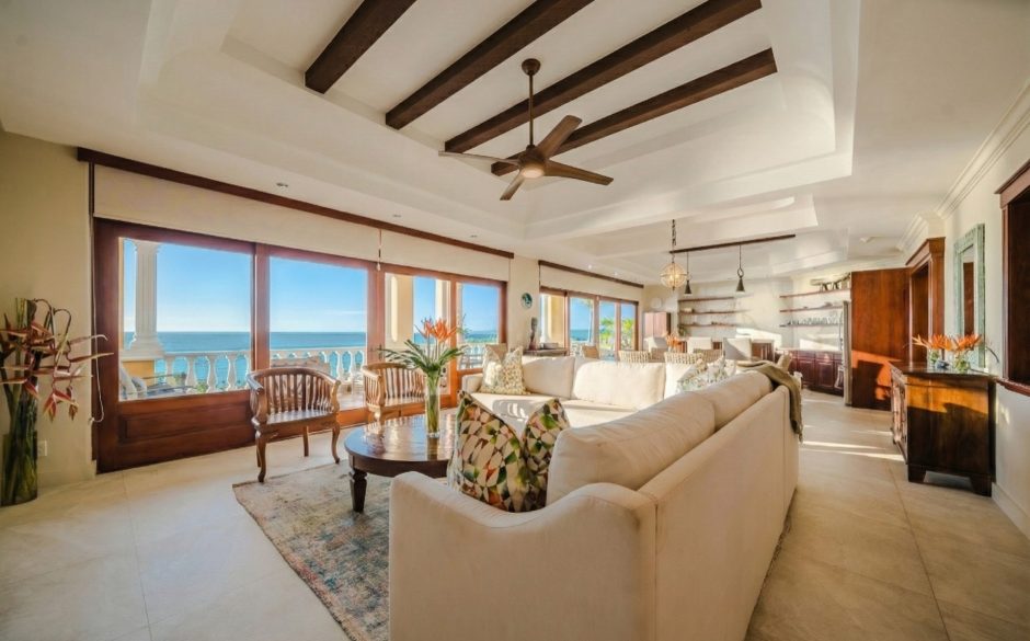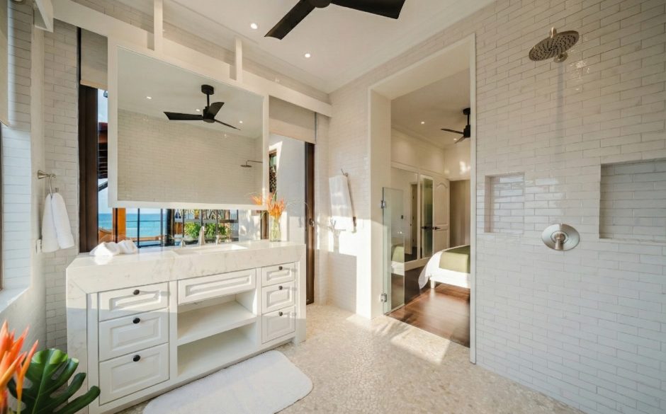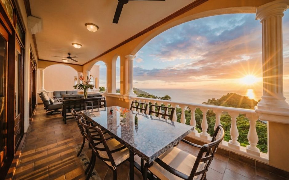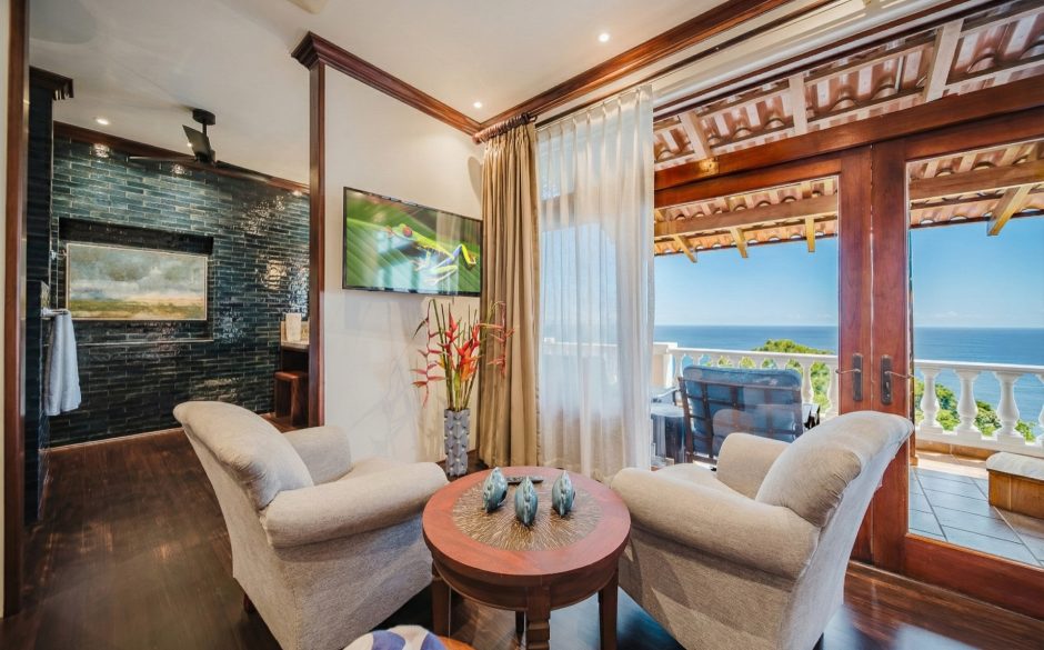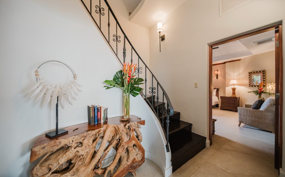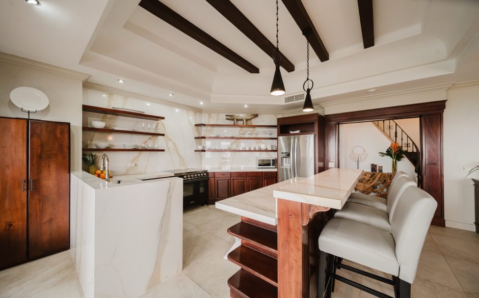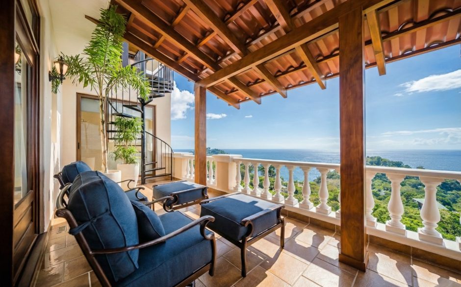 Villa Vista MA is a 3-bedroom penthouse, 3 bath, panoramic ocean and mountain-view luxury condo providing the perfect natural setting for observing Costa Rican wildlife as well as a great location for walking to restaurants, sunset cafés, the beach and shops. Located in central Manuel Antonio, across from the best restaurants in the area and boasting sweeping ocean and sunset views, Villa Vista MA is sure to impress. Complete with elevator access from the main floor, once you walk into our unit, you will immediately be enveloped by the sweeping views. You’ll step into the foyer, which connects to an open-floor plan of the living, dining, kitchen and wrap-around furnished patio. Each bedroom is private, has comfortable bedding, white linens and en suite baths to maximize privacy for everyone. The master suite is located on the second floor and has it’s own ocean-view private balcony and oversized bathroom with jacuzzi tub! A true luxury condo in the heart of Manuel Antonio…